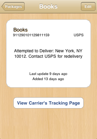 Push updates! Everytime your package moves we'll send your iPhone an update with the new location.