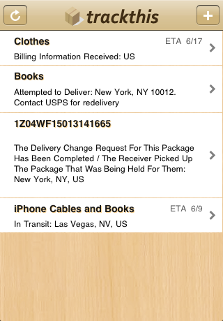 View a simple list of all of the packages you're tracking, their status and estimated delivery date